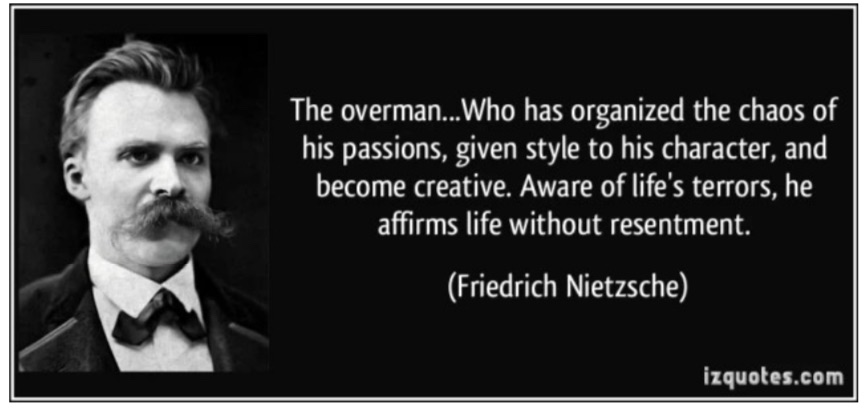 Nietzsche’s Uberman, Beyondman, Superman, Ubermensch, or Overman in his book “Thus Spoke Zarathustra” is a goal for humanity to set for itself and live by. It is the ideal person; the person we all aspire to be. It is the voice in our head telling us to do right and be better.